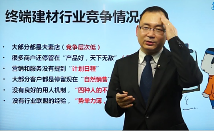 终端建材行业竞争情况分析:大部分都是夫妻店(竞争层次低);很多商户还停留在“产品好,天下无敌”(无品牌感念);营销和服务没有提到“计划日程”;大部分客户都是停留现在“自然销售”的年代;没有良好的用人机制,“四种人的不同管理”;没有行业联盟的经验,“势单力薄,转单是关键“。