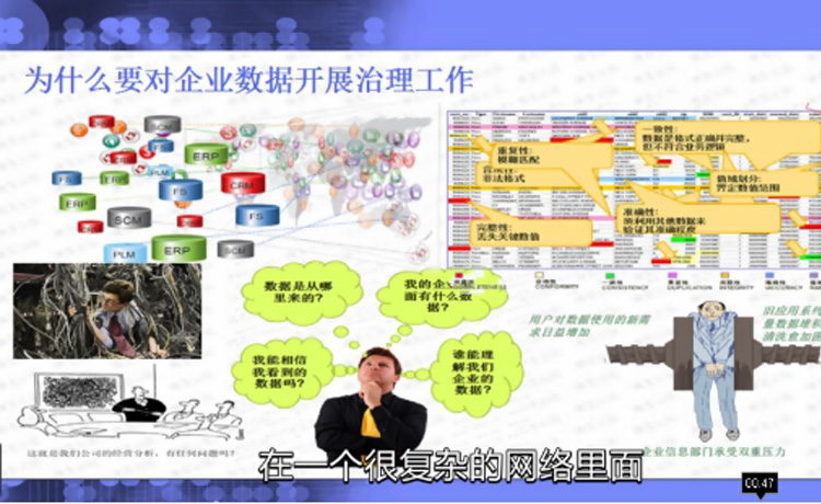 《你应该了解的企业数据那些事》在线视频课程中,企业数据实验室(中国)创办人张靖笙老师,从企业数据的建立,利用、整合等方面提高你的数据管理能力,教会你懂得如何建立企业数据模型,利用数据模型进行企业管理,促进企业信息系统建设。