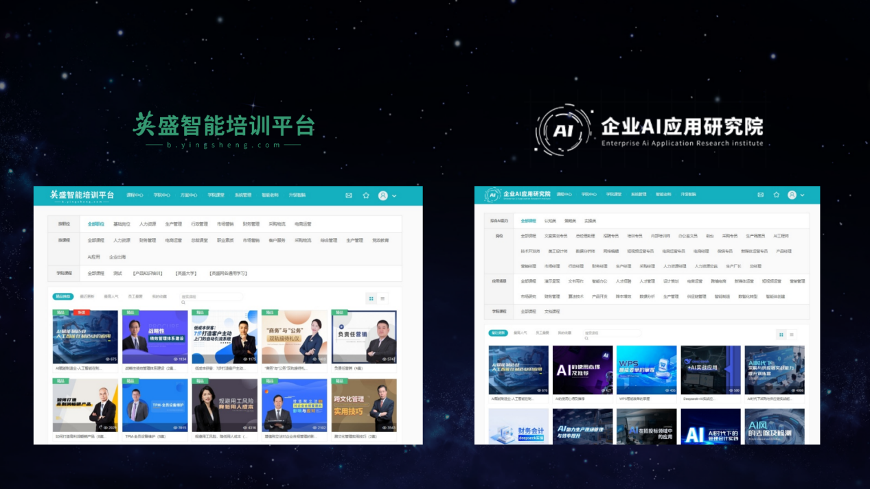 两套平台,一套逻辑:英盛智能培训平台沉淀智慧,企业AI应用研究院培训平台落地智能。企业无需自行摸索,可以通过系统化的学习与应用体系,逐步构建属于自己的双智操作系统。