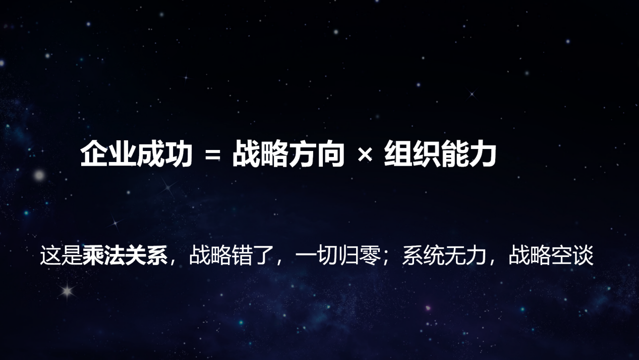 智慧的核心公式是:企业持续成功 = 战略 × 组织能力。战略是做正确的事,组织能力是把事做正确。二者是乘法关系——战略错了,一切归零;系统无力,战略空谈。