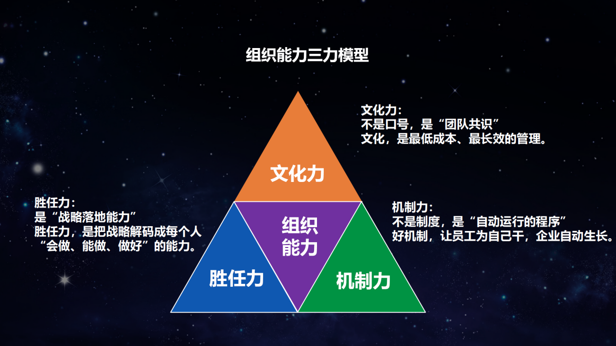 这套系统的核心,是组织能力。实践中,它可以精炼为一个行之有效的“三力模型”: