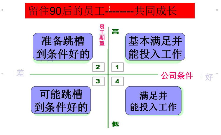 80、90后员工有自己的特点,企业应该重视、认可员工,通过沟通了解员工的想法和需求。学会和90后共同成长。吕润贤老师也提醒说,各位企业管理者应该转变观念,重新审视和员工之间的关系。