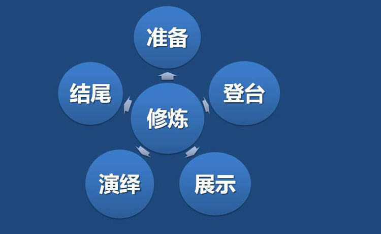 第二大修炼,登台。很多人都会登台,但是有魅力的登台方式是很多人欠缺的。学会开、定、稳登台法,拒绝紧张,技巧性应对学员。