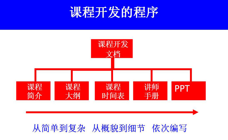在整个课程开发的过程中,比较重要的是课程大纲的编写。课程大纲是在明确了培训主题和了解培训对象之后,对培训内容和培训方式的初步设想,大纲给课程定了一个方向和框架,整个课程将围绕着这个框架一步步充实和延伸。课程大纲将给出本课程的主要内容和学习的方向。